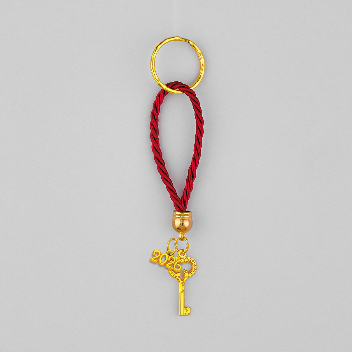 Χειροποίητο Γούρι 2026 Κρεμαστό Μπρελόκ κορδόνι, Μεταλλικό Κλειδάκι σε χρυσό χρώμα 1,5Χ3,2εκ. Συνολικό ύψος περίπου 10εκ.
