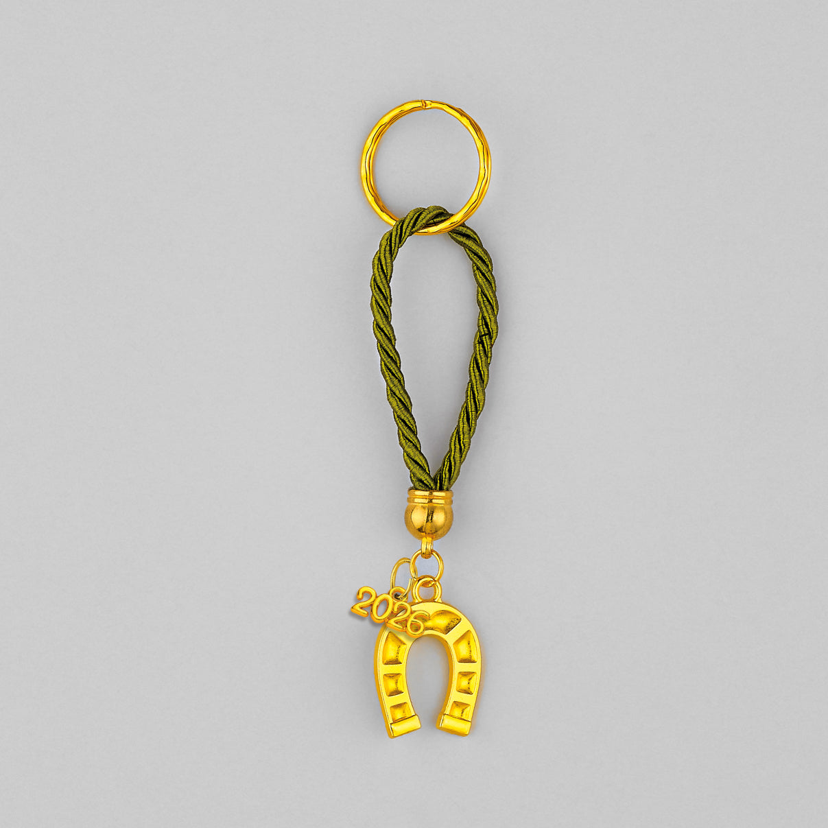 Χειροποίητο Γούρι 2026 Κρεμαστό Μπρελόκ κορδόνι, Μεταλλικό Πέταλο σε χρυσό χρώμα 2,2Χ3,4εκ. Συνολικό ύψος περίπου 10εκ.