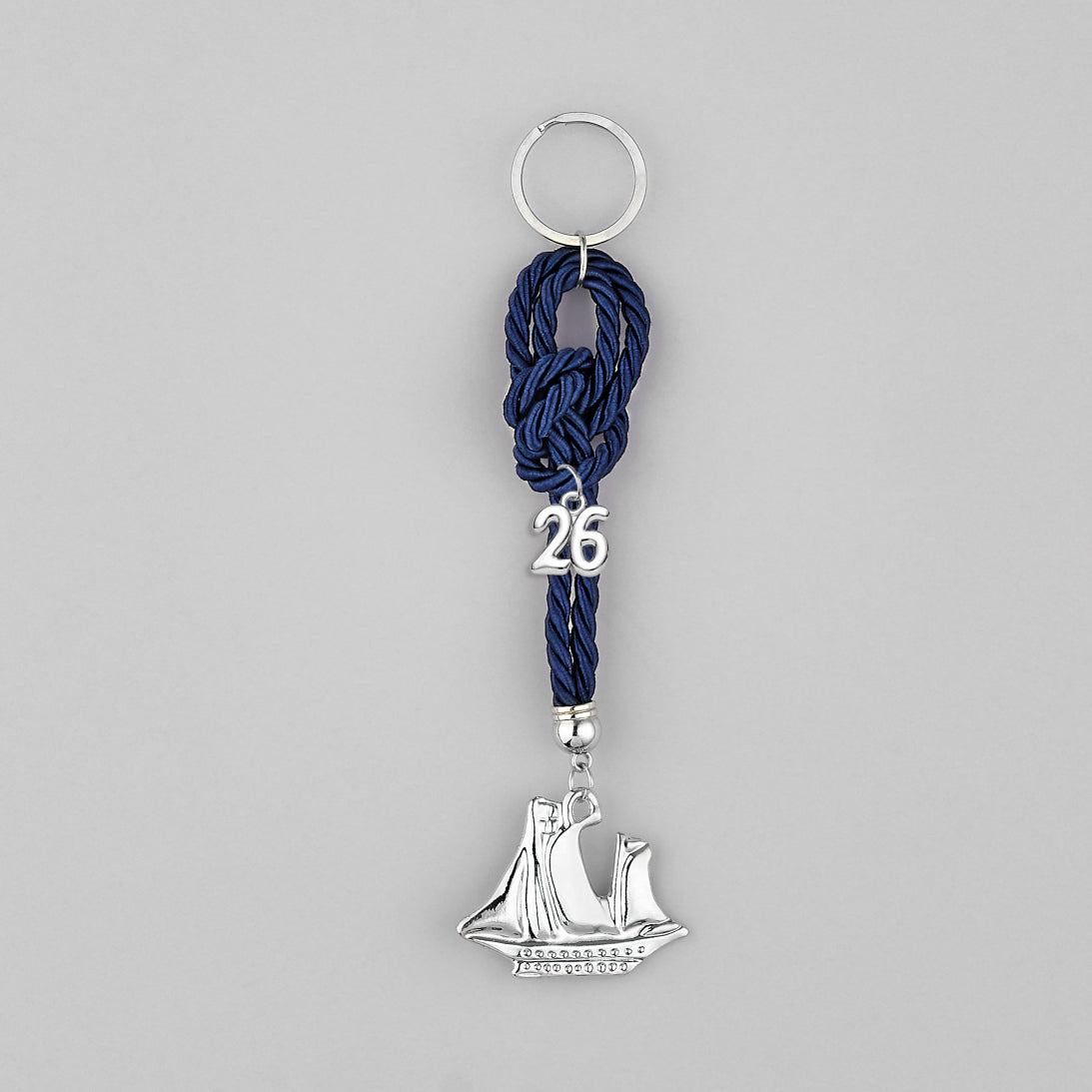 Χειροποίητο Γούρι 2026 Κρεμαστό Μπρελόκ κορδόνι με δέσιμο, Μεταλλικό Μεγάλο Καράβι σε ασημί χρώμα. Συνολικό ύψος περίπου 13εκ.
