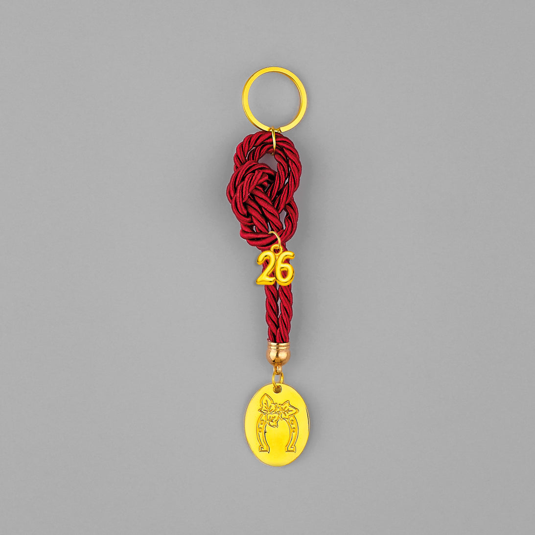 Χειροποίητο Γούρι 2026 Κρεμαστό Μπρελόκ κορδόνι με δέσιμο, Μεταλλικό Διακοσμητικό Οβάλ Στεφάνι με Φιόγκο χρυσό χρώμα 2,5Χ3,5εκ. Συνολικό ύψος περίπου 13εκ.