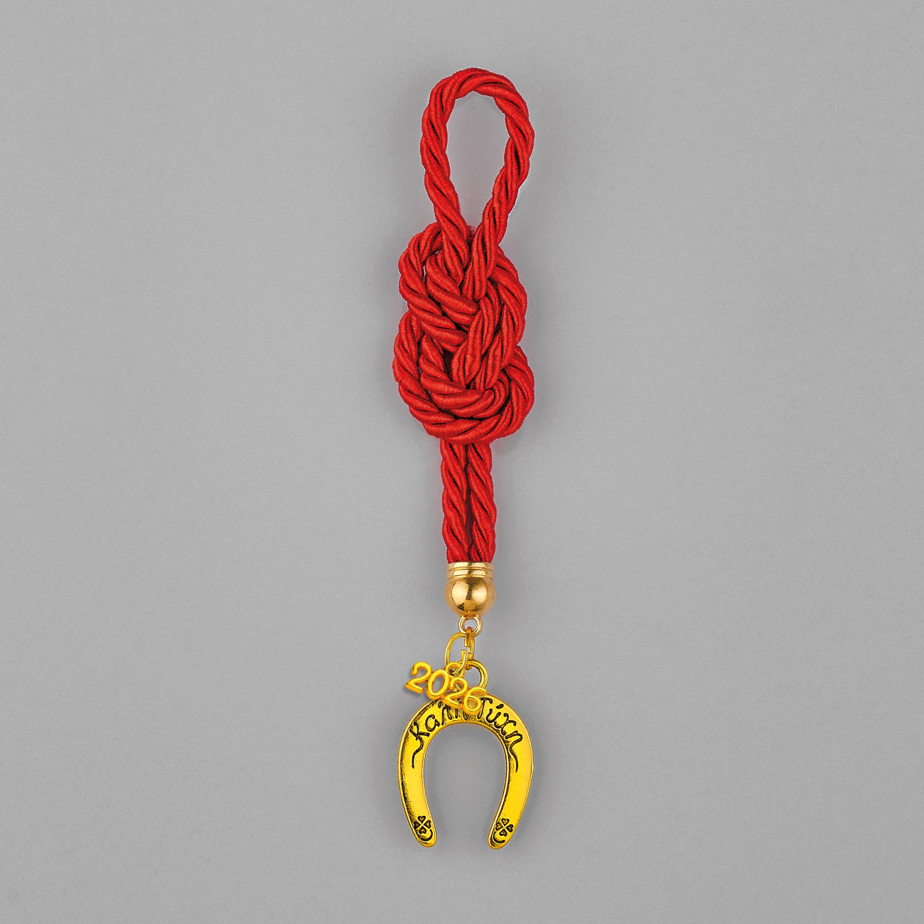 Χειροποίητο Γούρι 2026 Κρεμαστό κορδόνι με δέσιμο, Μεταλλικό Πέταλο με Ευχές χρυσό 2,5Χ3,5εκ. Συνολικό ύψος περίπου 13εκ.