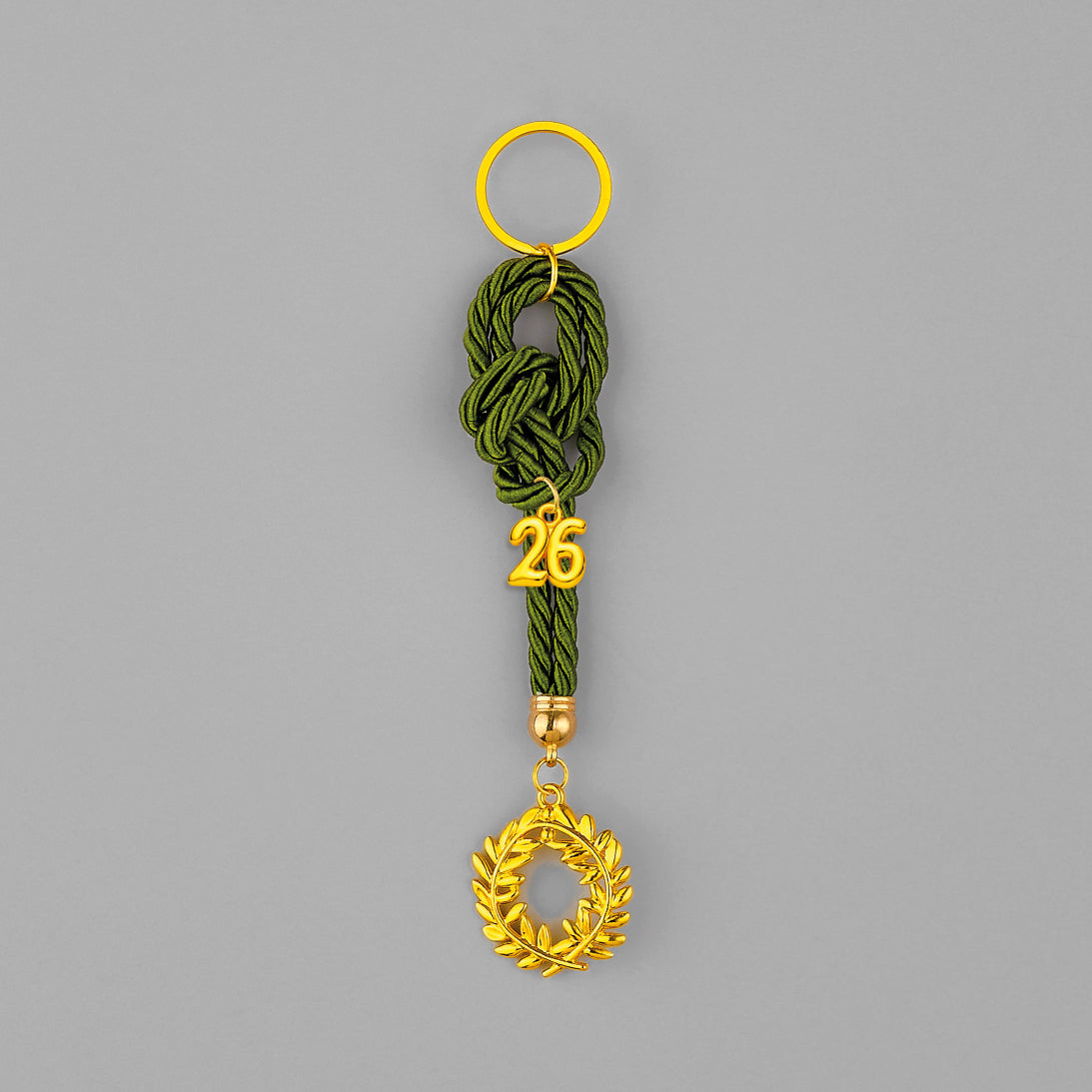 Χειροποίητο Γούρι 2026 Κρεμαστό Μπρελόκ κορδόνι με δέσιμο, Μεταλλικό Στεφάνι χρυσό χρώμα 3,5Χ3,5εκ. Συνολικό ύψος περίπου 13εκ.
