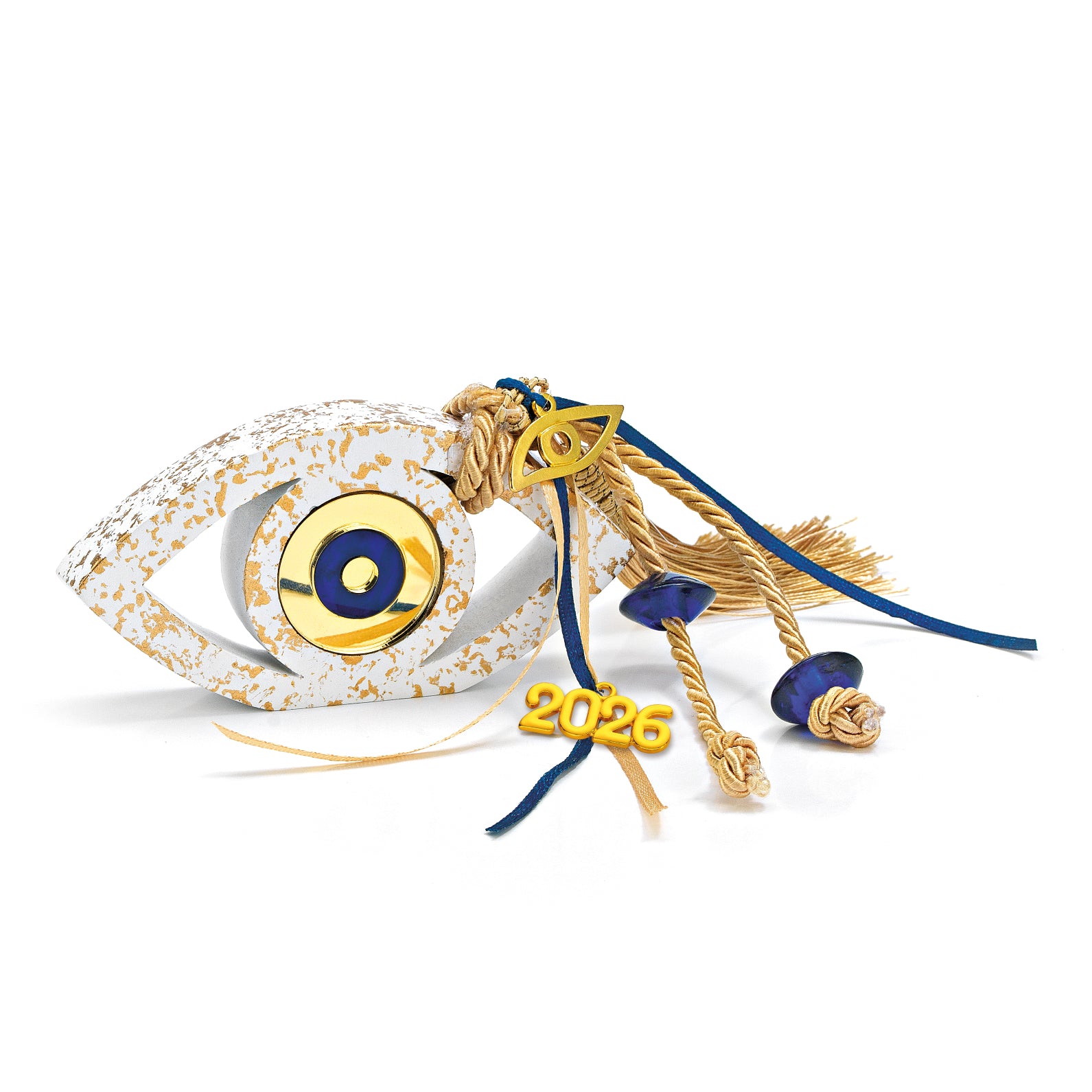 Κεραμικό Μάτι επιτραπέζιο Γούρι 2026 Άσπρο Χρυσό με Plexiglass Μάτι 11.5x6εκ.