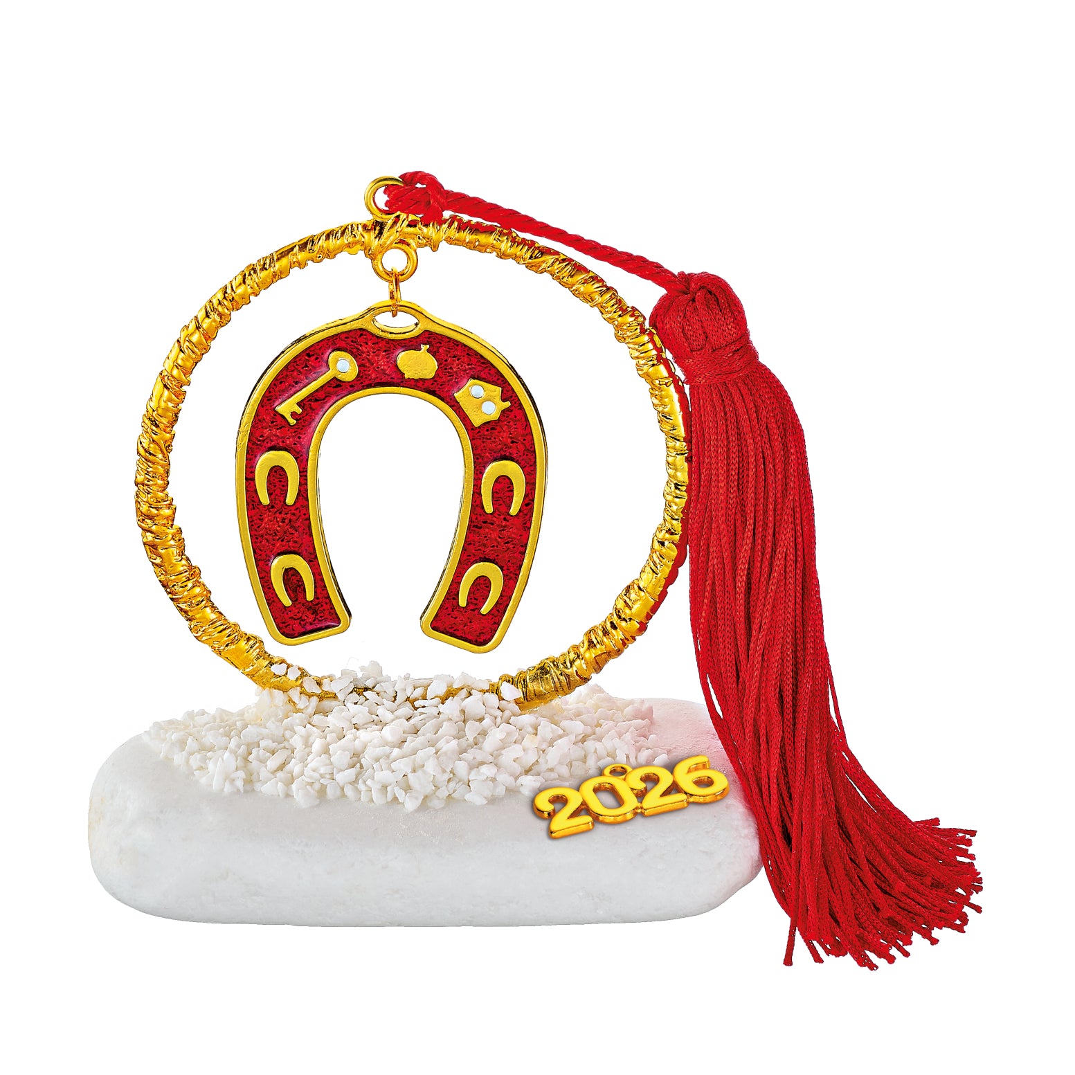 Γούρι 2026 Σφυρήλατος Κύκλος με Πέταλο & Κόκκινη Φούντα Υ12εκ.