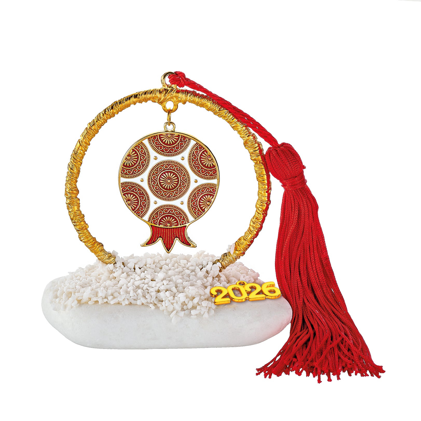 Γούρι 2026 Σφυρήλατος Κύκλος με μπορντό Μάνταλα & Κόκκινη Φούντα Υ12εκ.