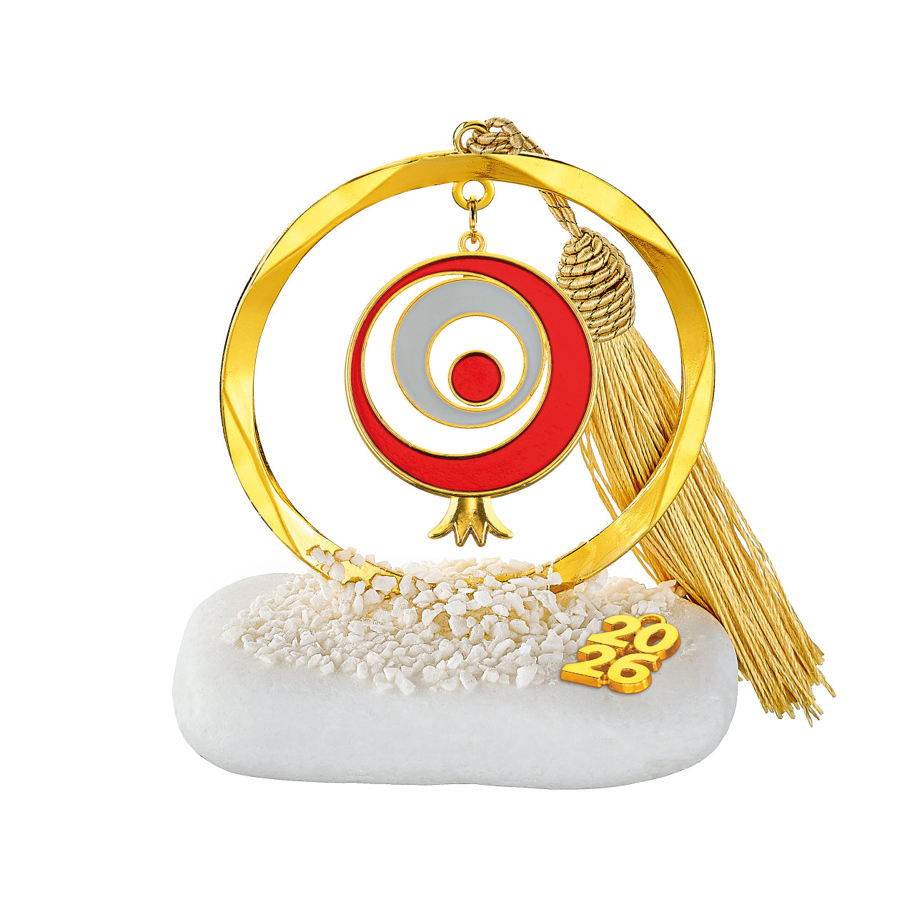 Χειροποίητο γούρι 2026 σε Πέτρα Ρόδι με μάτι σε κύκλο & Χρυσή Φούντα Υ9εκ.