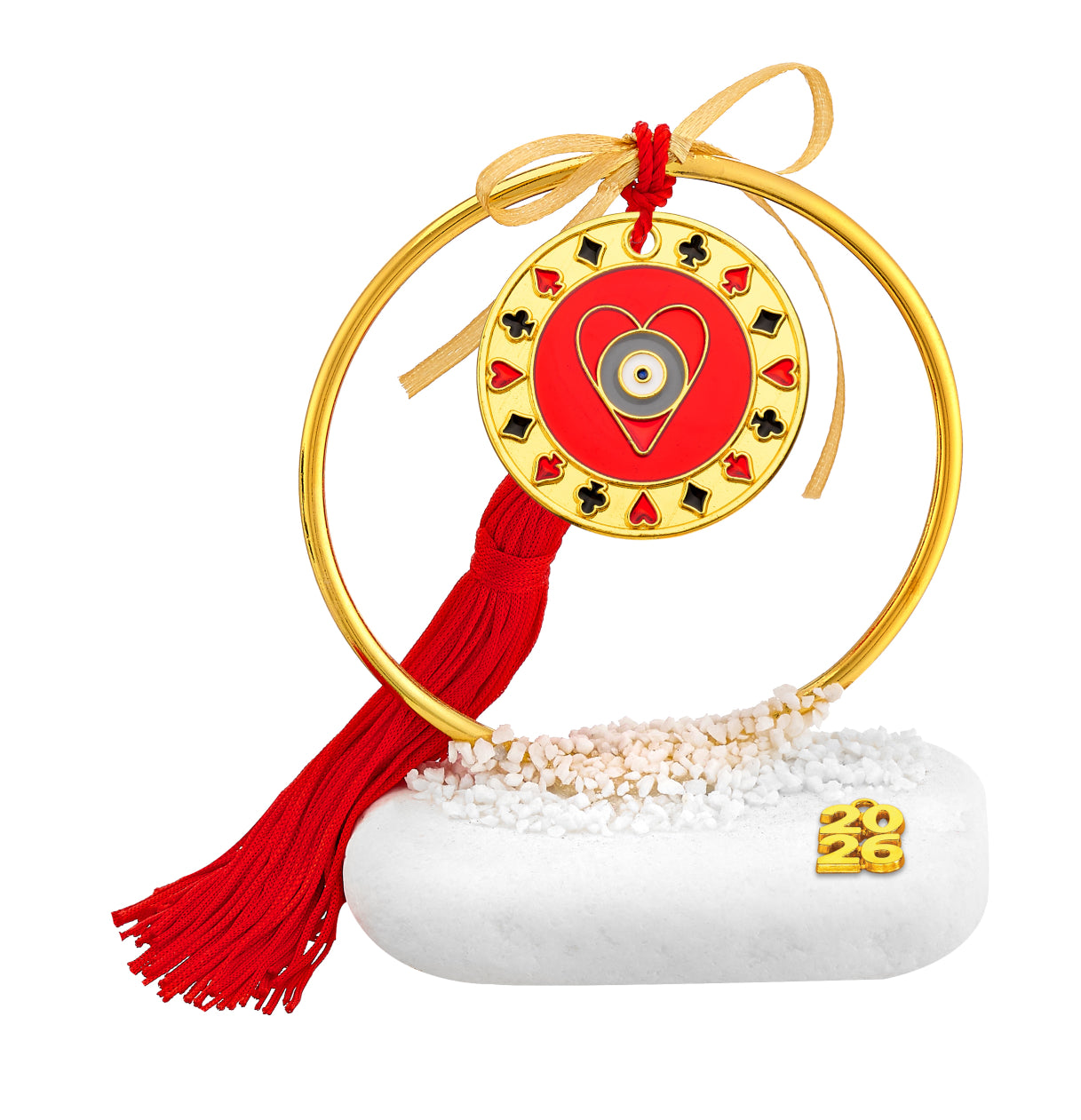 Χειροποίητο Γούρι 2026 Ρόδα της Τύχης σε κύκλο & Κόκκινη Φούντα σε Πέτρα Υ12εκ.