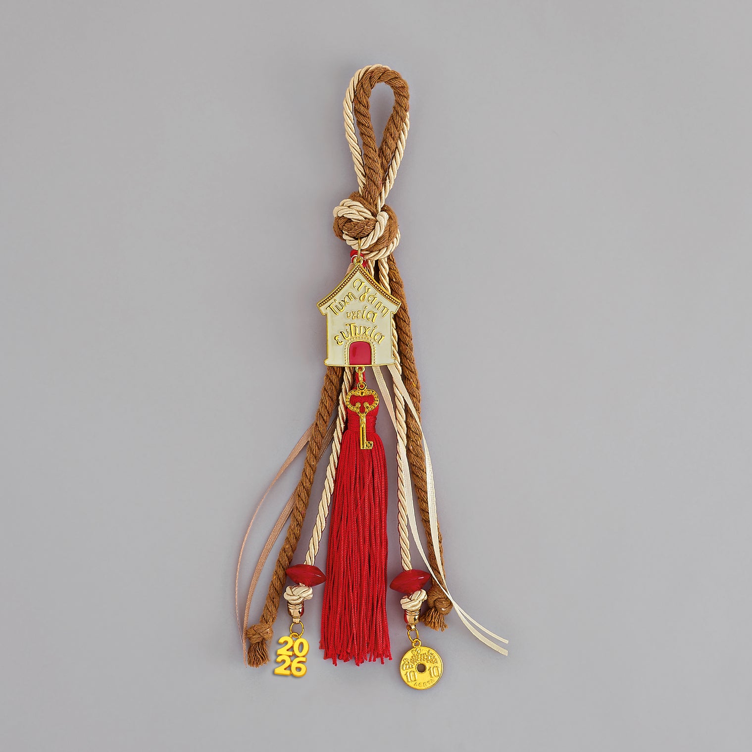 Χειροποίητο γούρι 2026 Κρεμαστό κορδόνι & Σπιτάκι με Ευχές.